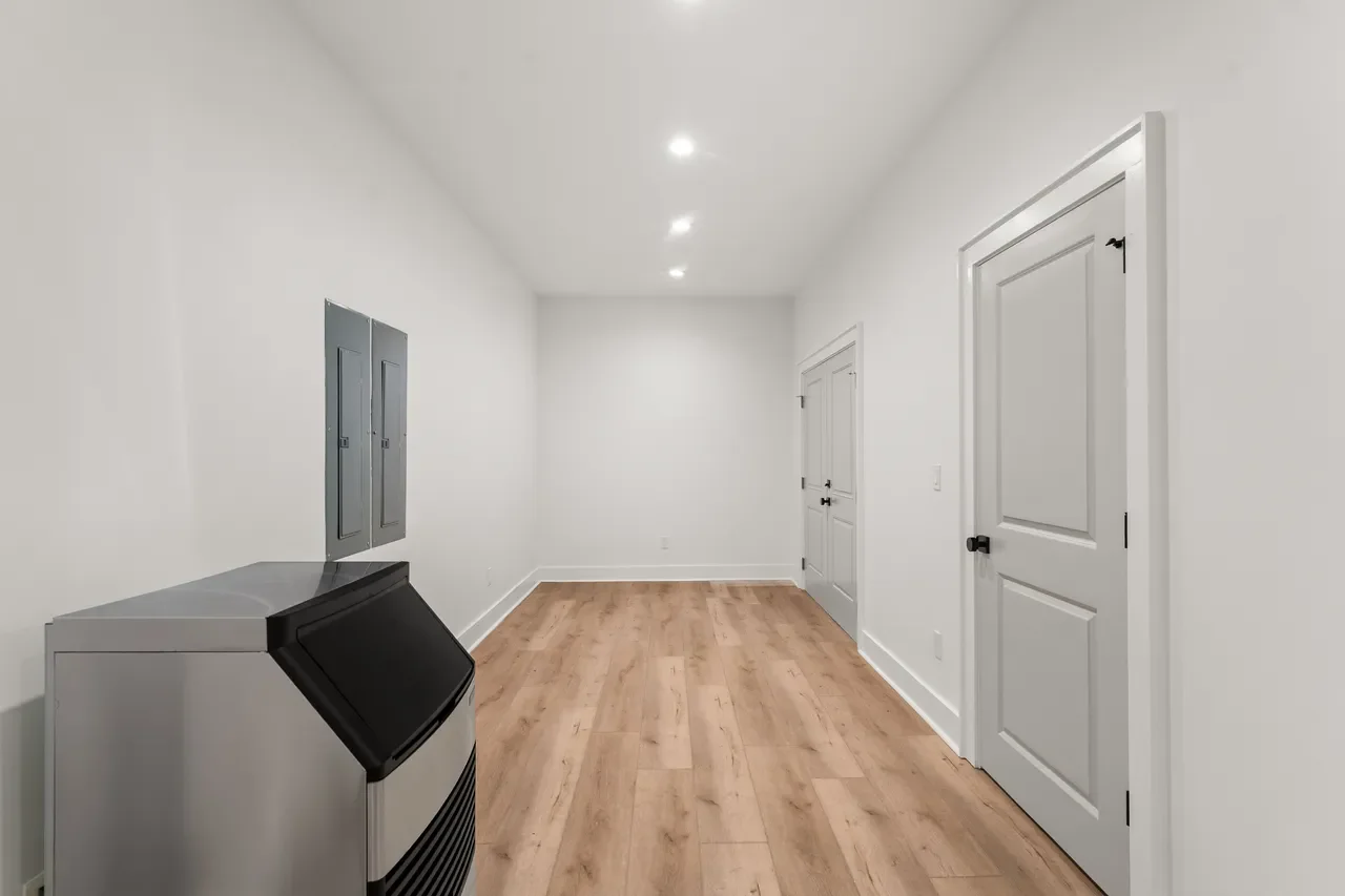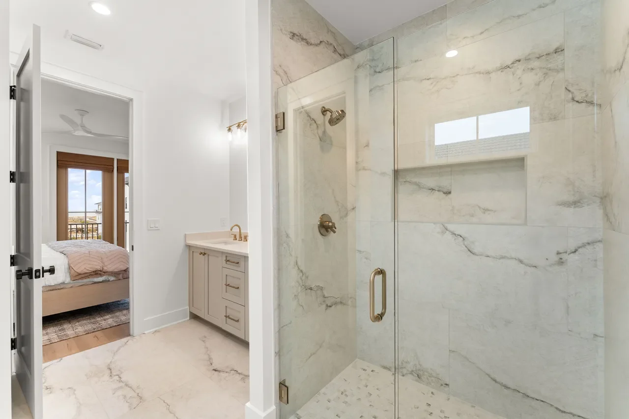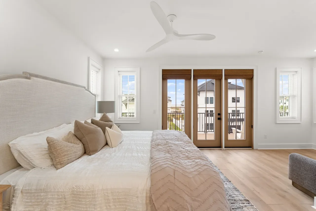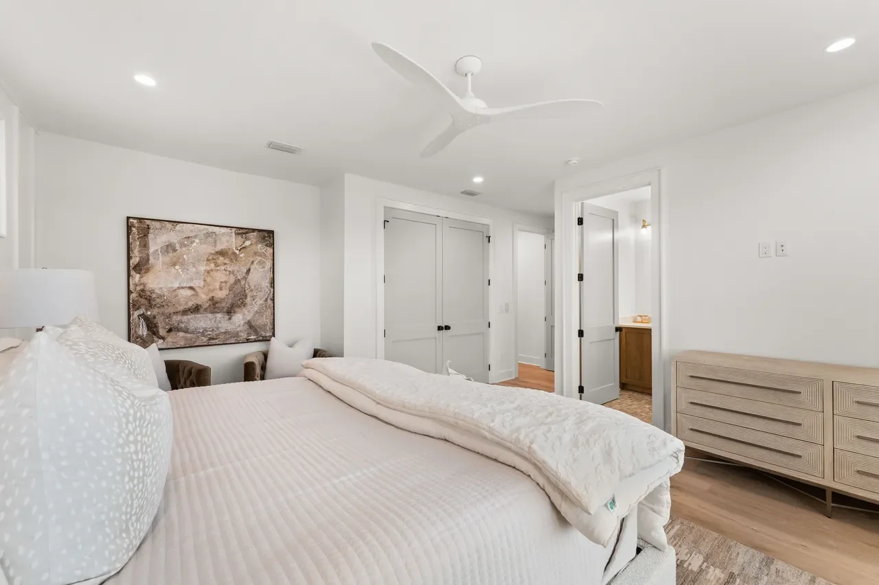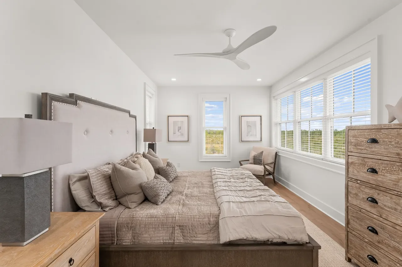 The main living level is airy and inviting, wrapped in soft coastal tones and anchored by an open chef’s kitchen with quartz surfaces, a generous island, premium appliances, and abundant storage. Recessed lighting, crown molding, intentional detailing, and curated furnishings elevate every space, creating a refined atmosphere suited for extended stays or high-demand rental appeal.